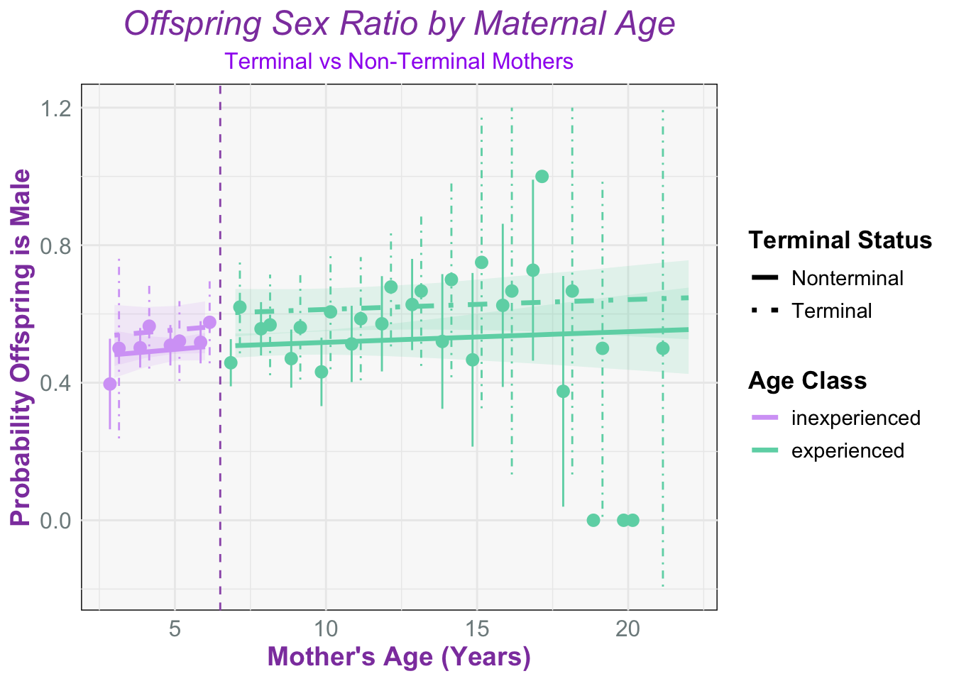 Only terminal status is positively associate with the outcome in experienced mothers (Est: 0.39)